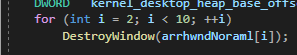 The POC then creates ten windows in a loop using CreateWindowEx. However, it only uses the first two windows created so that two windows are created in close memory proximity.