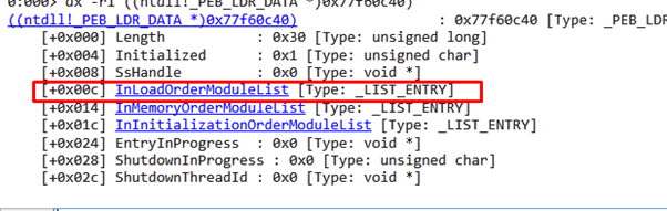 First, let’s click the InLoadOrderModuleList link in WINDBG.