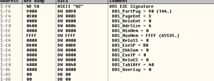 The structure where it starts the header that is in imagebase is called _IMAGE_DOS_HEADER. We see the MZ of two bytes at the beginning of the DOS executable.