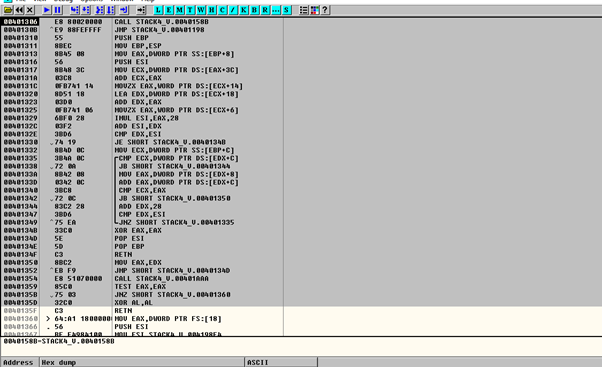 By adding the base to the AddressOfNames, which was in EDI, we now have the address of that array of pointers with the name of exported functions in ESI.