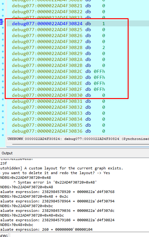 Before returning to the main, it also creates a chunk using RtlAllocateHeap. It is then caught and stored in the base variable inside the hook function: