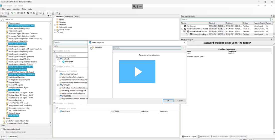 This overview walks you through some of Core Impact's easy-to-use features and functionality, demonstrating: